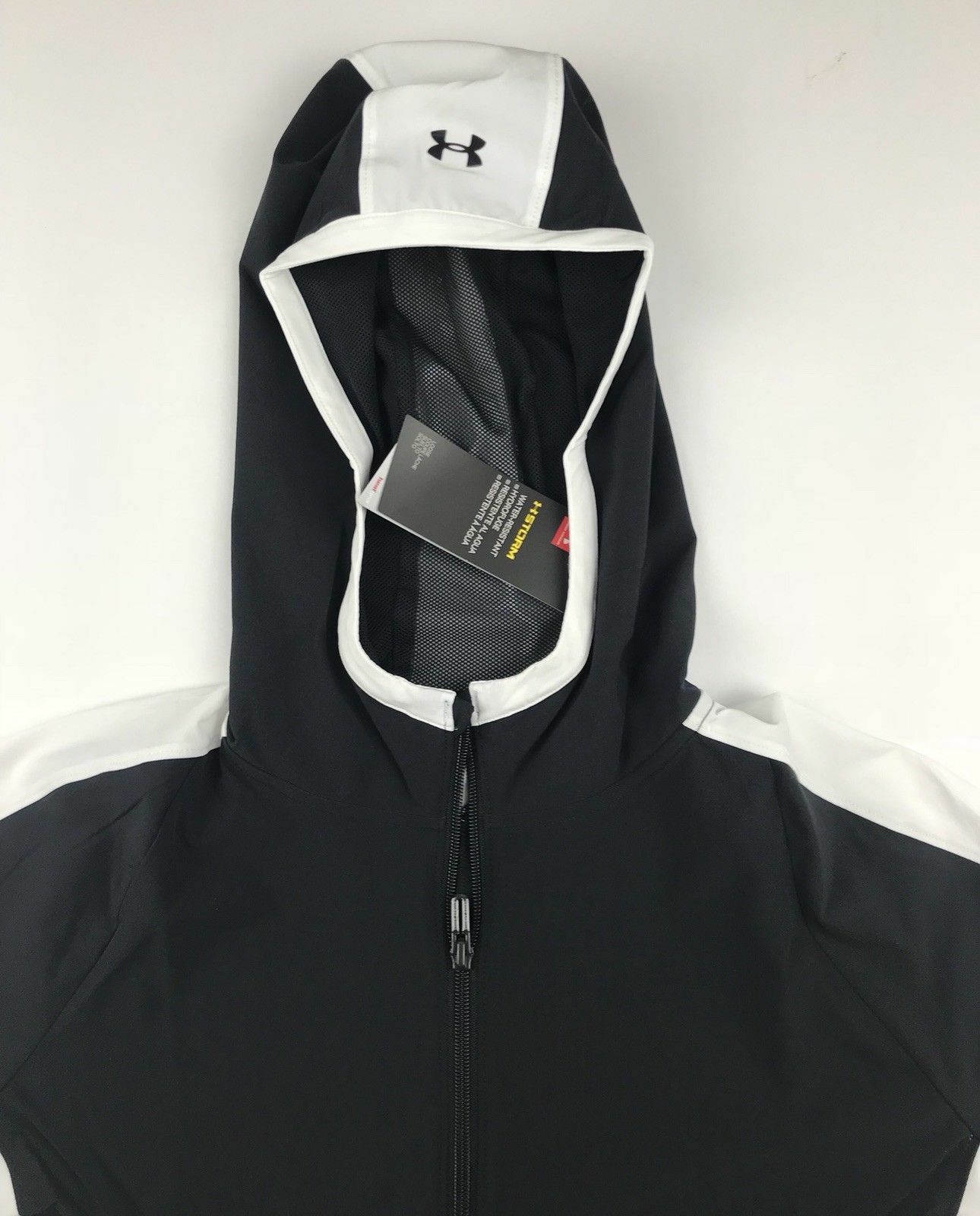 как выглядит Under Armour Womens Small UA Storm Black White Full Zip Hooded Running Jacket фото