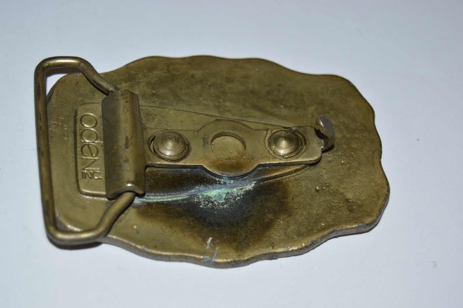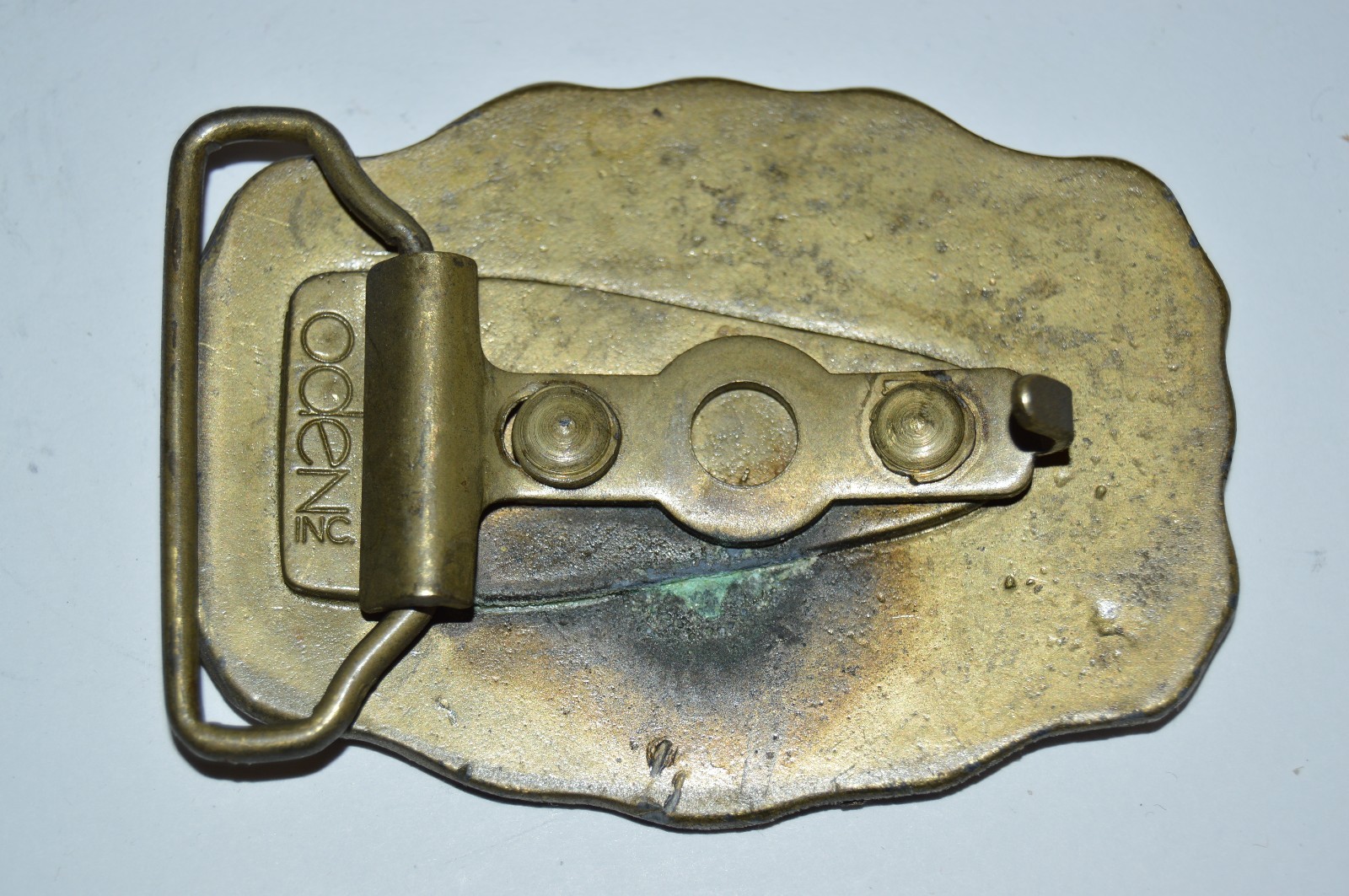 как выглядит Vintage 1970s Monogram Name "RICH" Richard ODEN Brass Belt Buckle RARE фото