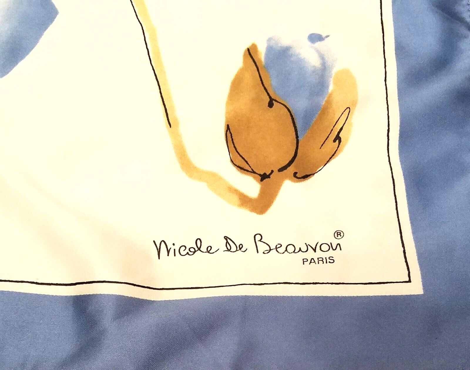 Nicole De Beauvon Paris Square Silky Vintage Scarf Blue Flowers Women's Fashion