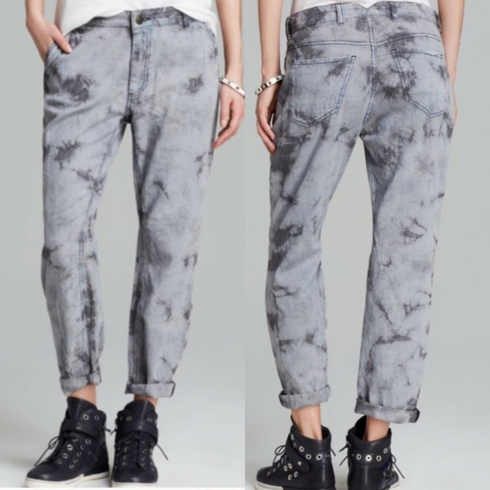 L'agence La't Grey Tie Dye Boyfriend Pants Sz 25 100 Cotton