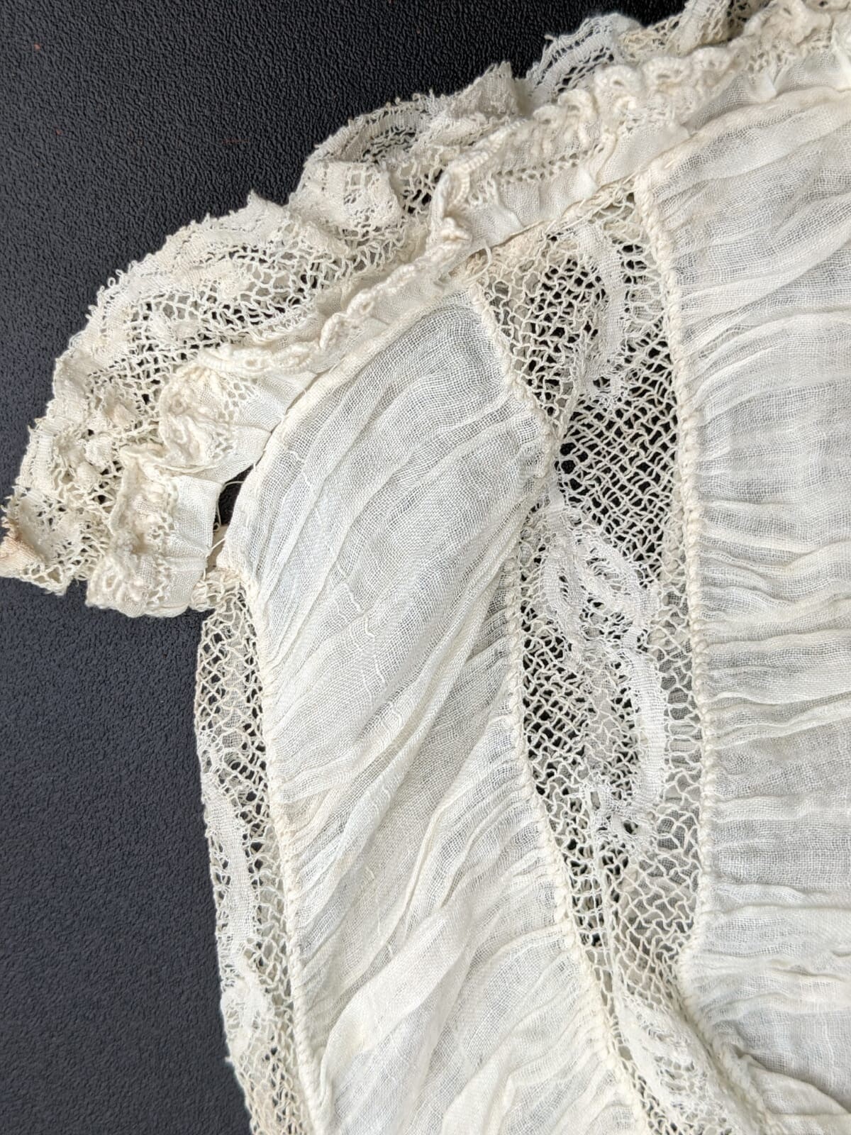 как выглядит VICTORIAN RUCHED MUSLIN BONNET W VALENCIENNES LACE INSERTION - GREAT FOR DOLL фото