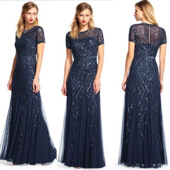как выглядит Adrianna Papell cap Sleeve beaded gown фото