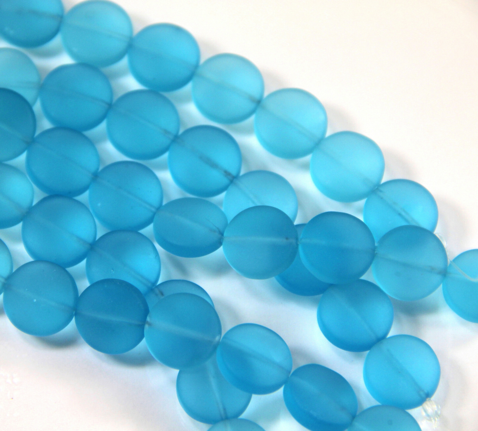 Puffed Coin Beads,12mm, Turquoise Bay w/ Frosted Finish, 8 Pieces