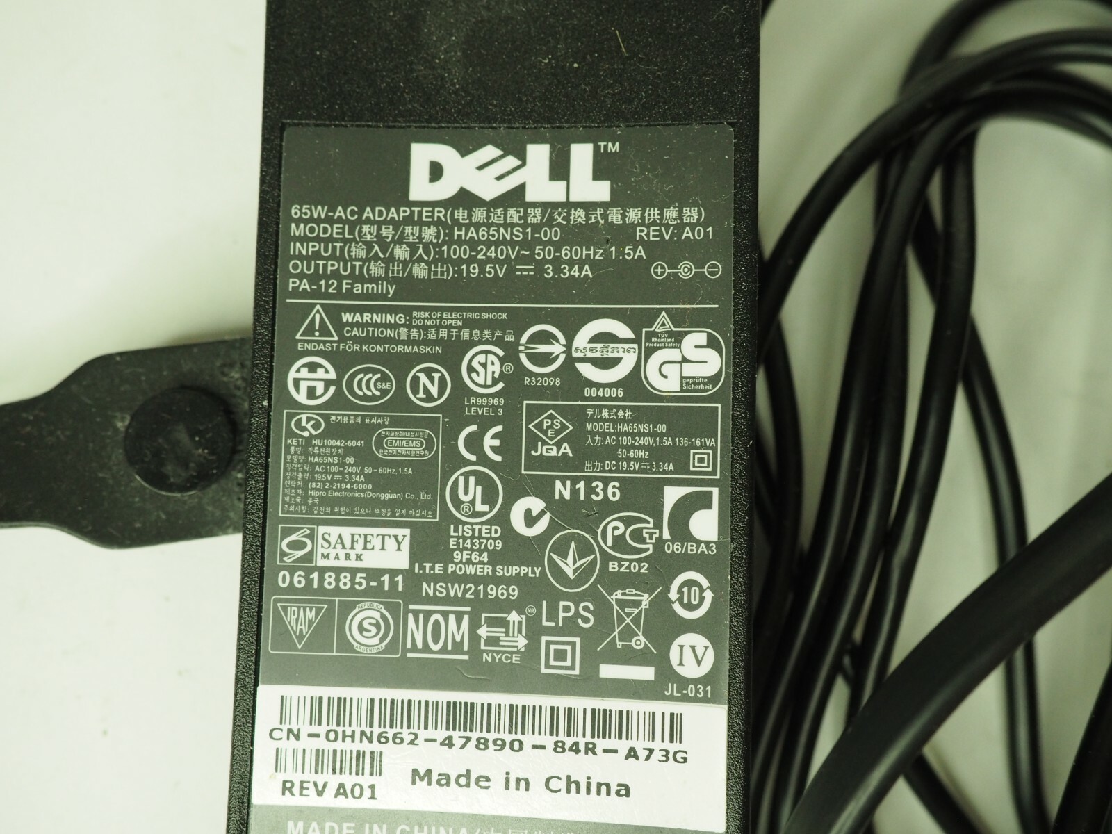 как выглядит Dell 65W-AC Adapter 19.5V HA65NS1-00 OEM Laptop Charger Power Adapter фото