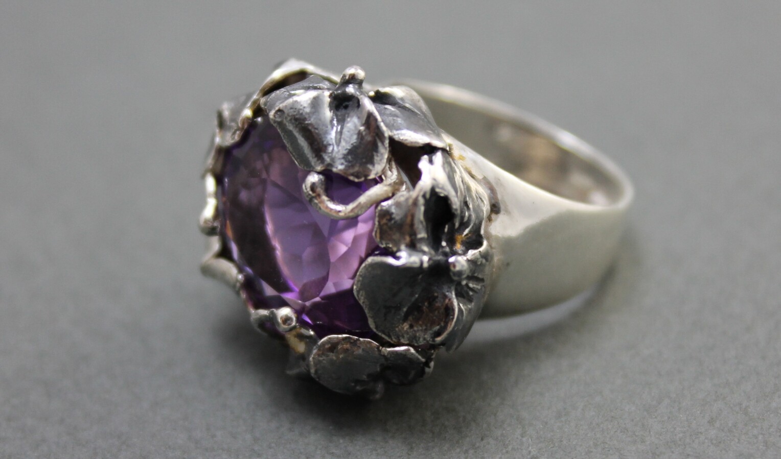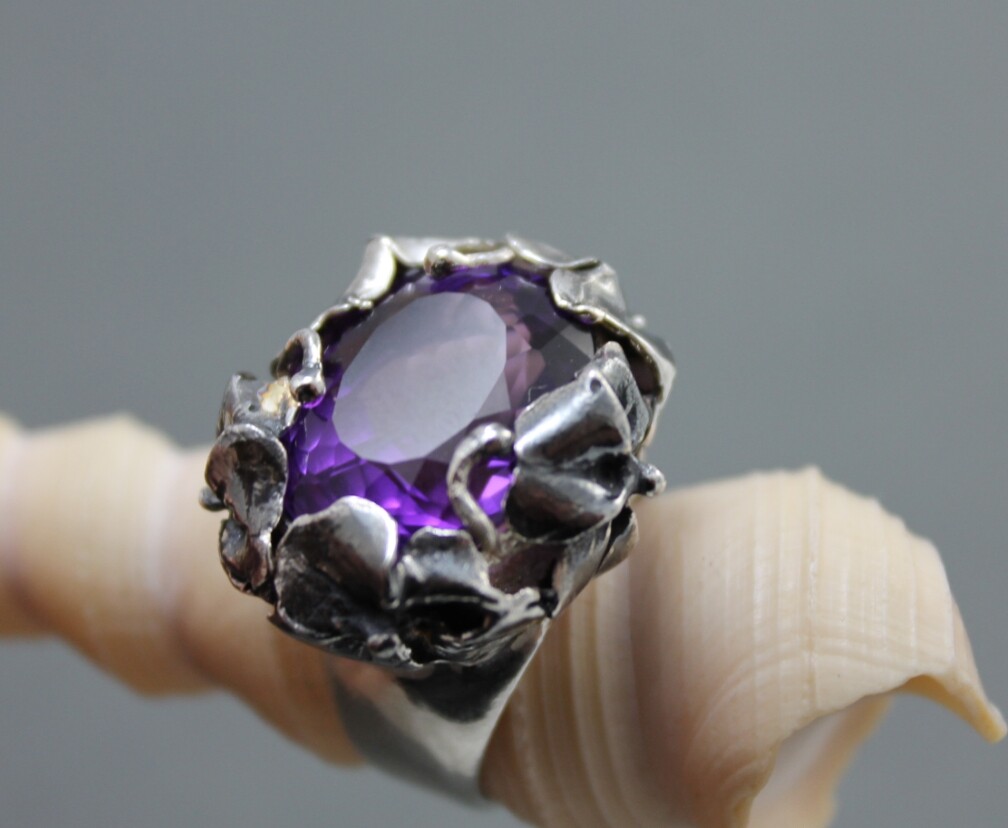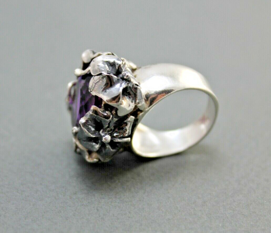 Facet Amethyst Ring Sterling Silver Art Nouveau Crafts for Good Relations