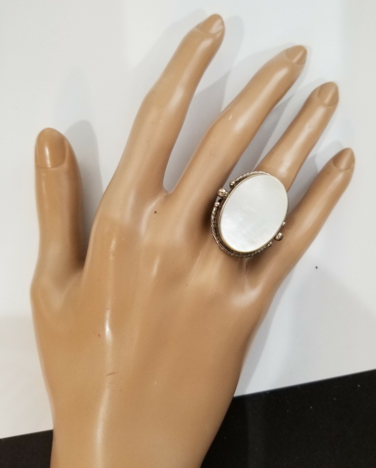как выглядит Vintage Sterling Silver 925 Mother Of Pearl Ring Sz 6 фото