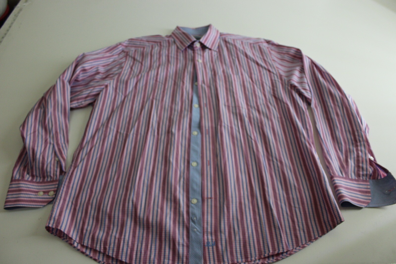 как выглядит Johnston Murphy Pink Blue Stripe LONG SLEEVE SHIRT Large L 16.5 x 35/36 фото