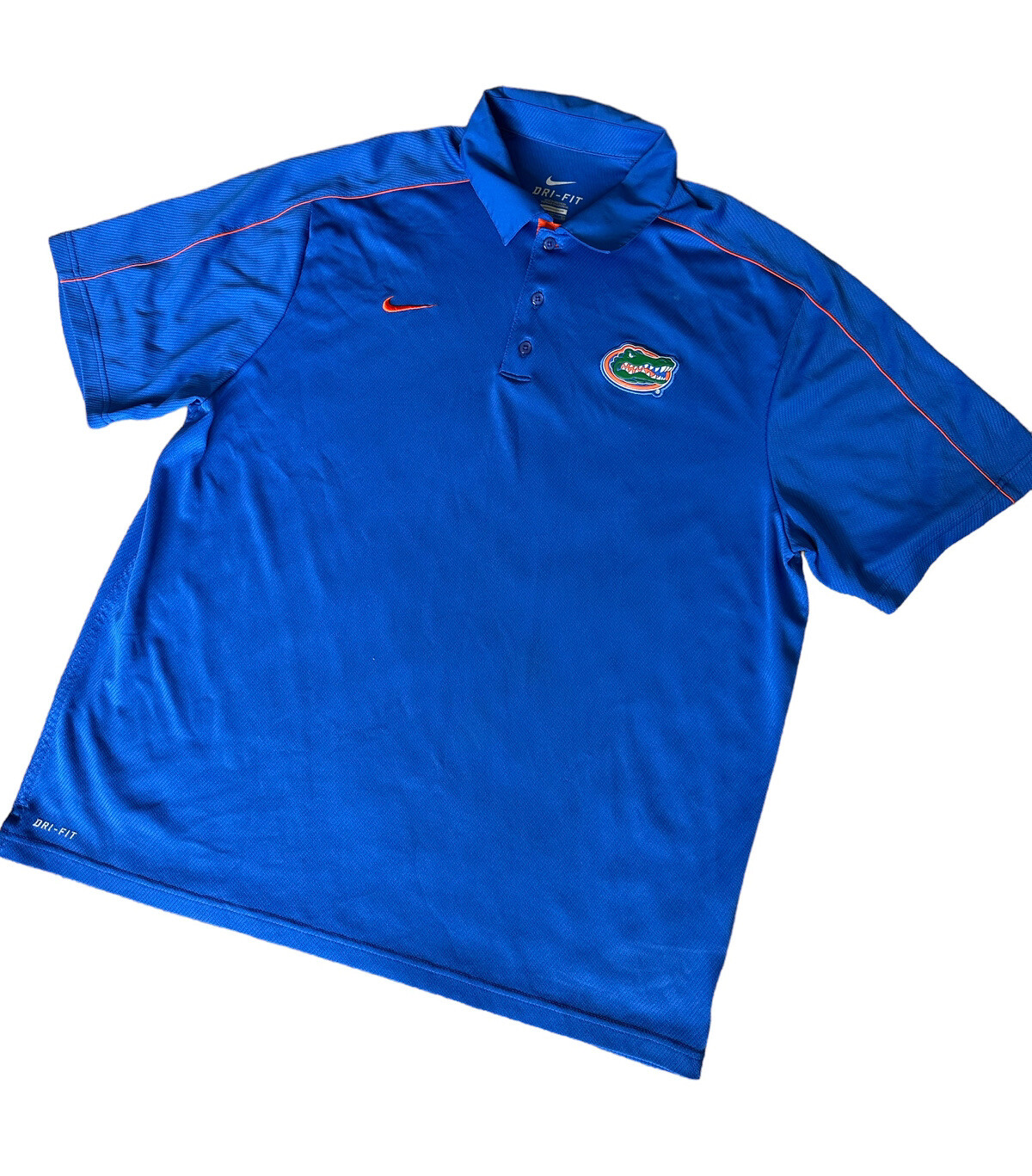 • NIKE FLORIDA GATORS DRI FIT BRIGHT BLUE ORANGE SHORT SLEEVE POLO SHIRT SIZE XL