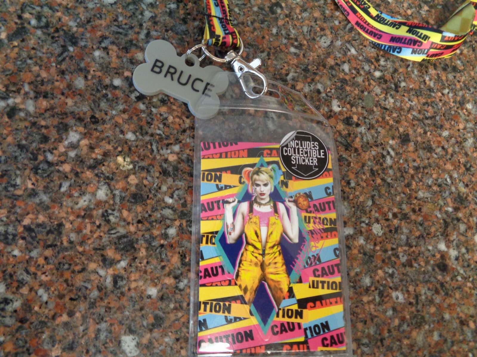 Birds of Prey Harley Quinn Lanyard with Bruce Bone Rubber Charm ID Badge