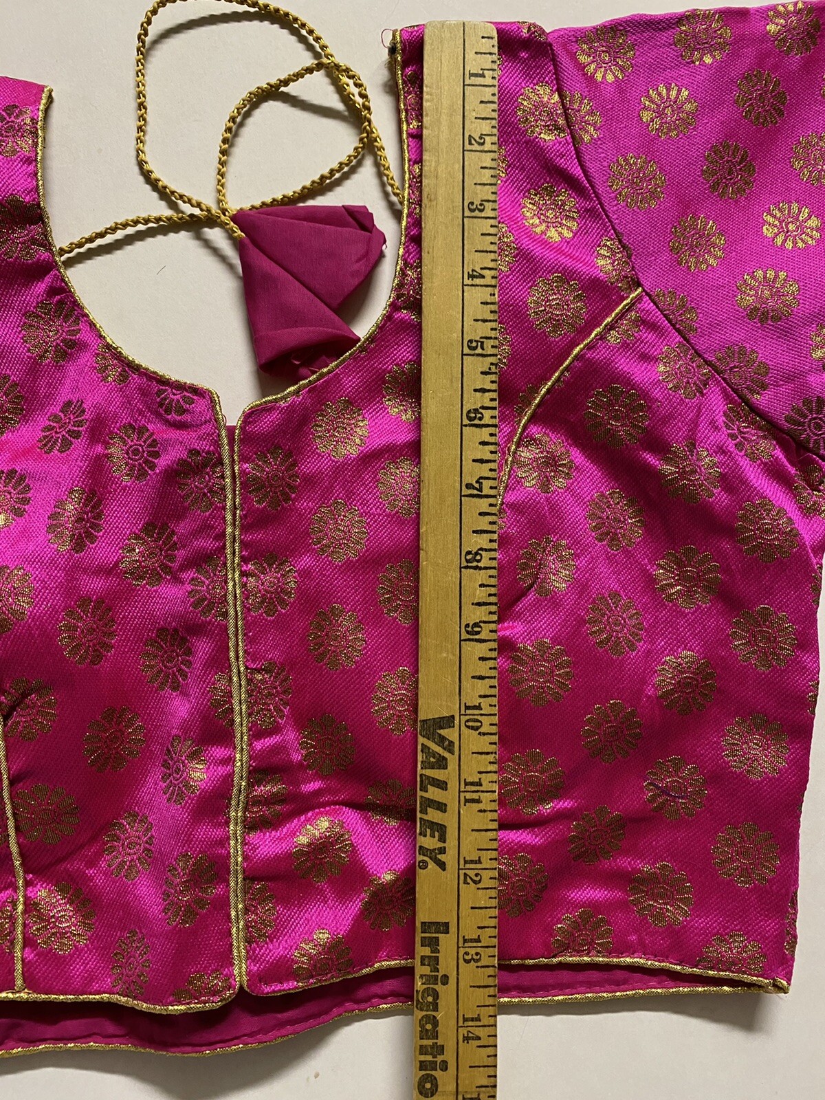 как выглядит NEW Readymade Designer Sari Blouse Rani pink GOLDEN BROCADE SLEEVES DORI 36"-USA фото
