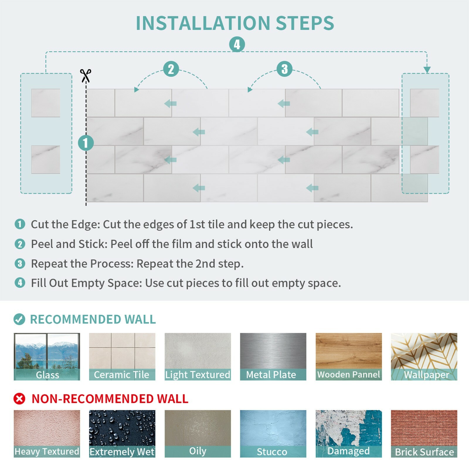 Installation: Self Adhesive, Peel-and-Stick
