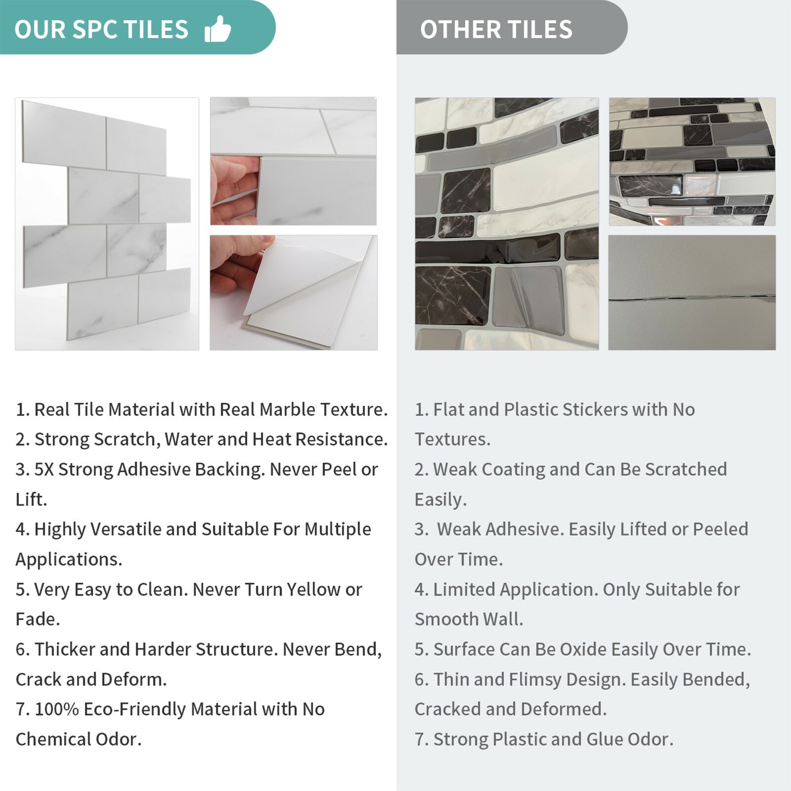 Особенности: 5X Stronger Adhesive, Light Weight, Strong Durability, Easy Maintenance, Easily Installation, High Versatility, Real Tiles, 4X Thicker, Water Resistant
