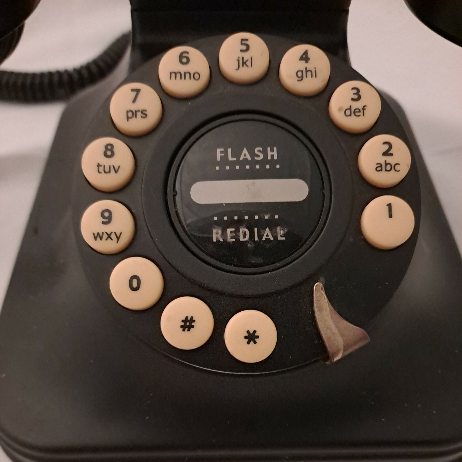 Black Grand Phone Push Button Vintage Retro Style Corded Phone