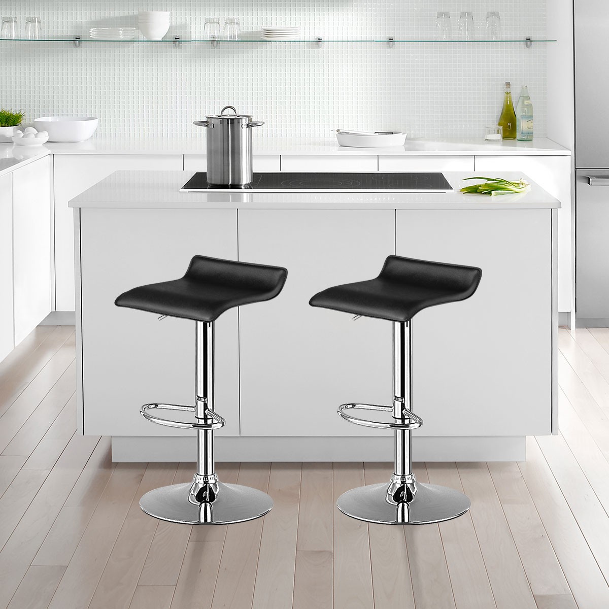 Set of 2 Swivel Bar Stool PU Leather Adjustable Kitchen Counter Bar Chairs Black