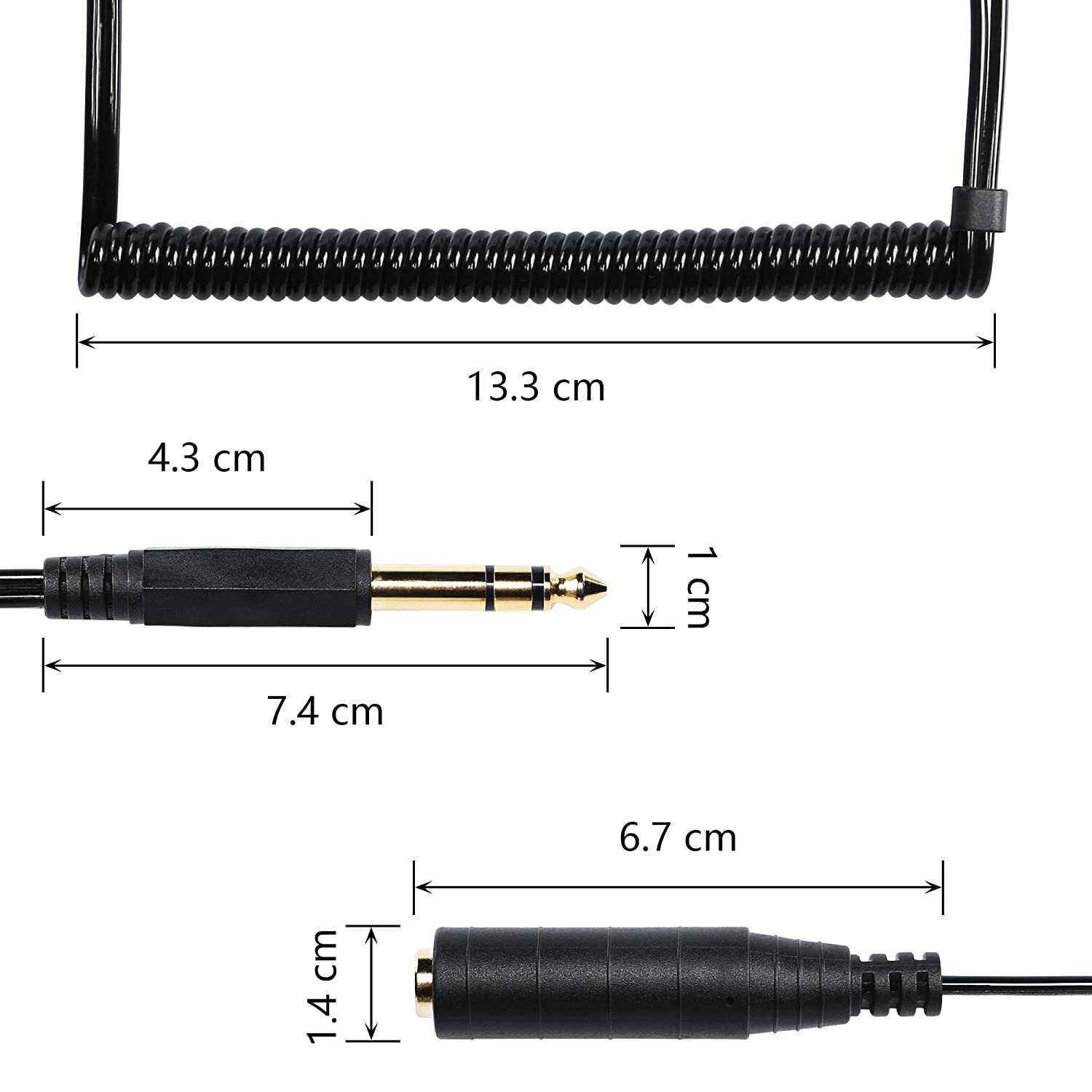 6.35mm Stereo Splitter Y Male Plug to Dual 1/4 Stereo Female Audio Coiled Cable