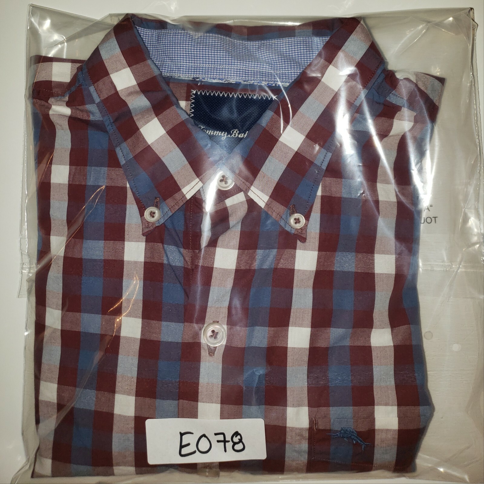 Tommy Bahama Mens Long Sleeve Button Front Red White Blue Plaid Shirt Size M