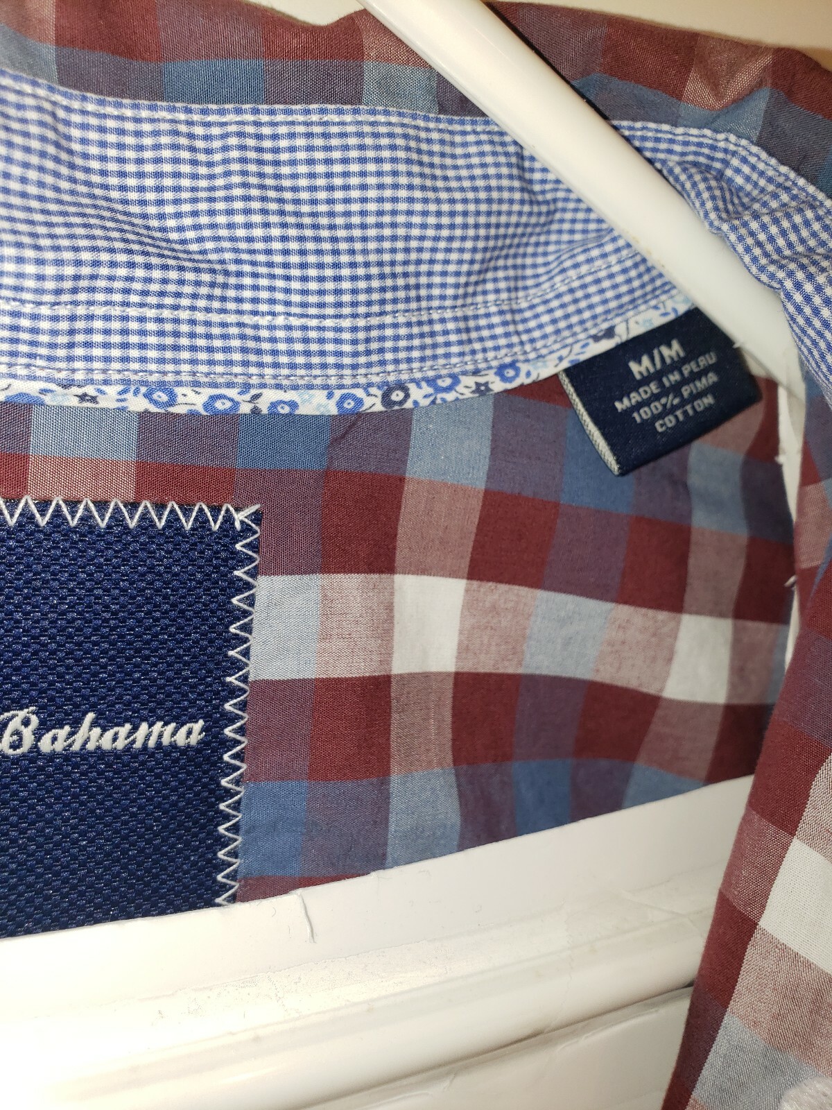 как выглядит Tommy Bahama Mens Long Sleeve Button Front Red White Blue Plaid Shirt Size M фото