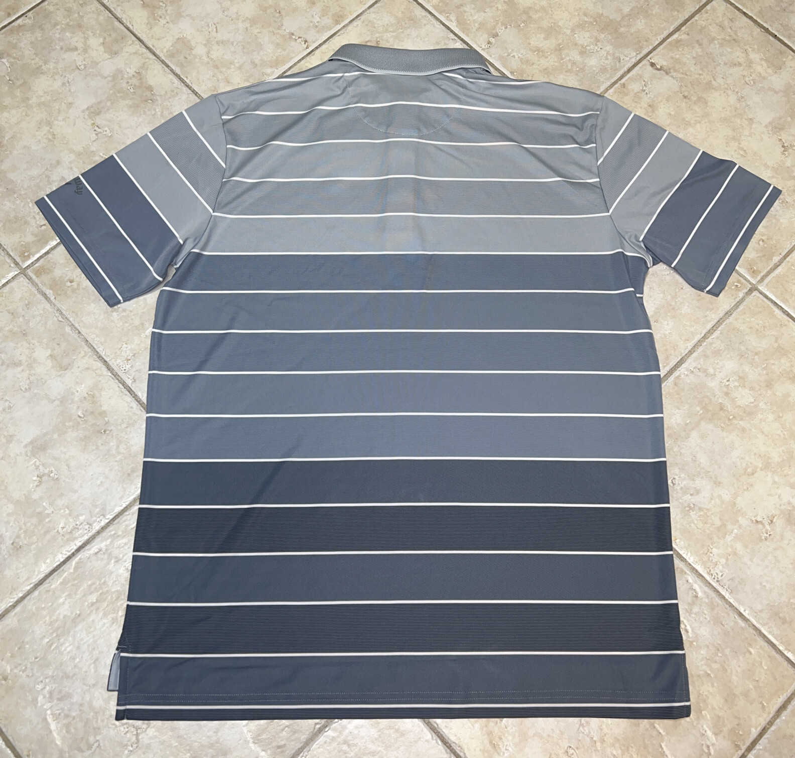 как выглядит Callaway Opti-Dri Golf Shirt L Pearl Blue UPF 15 Multi Striped Stretch NWT фото