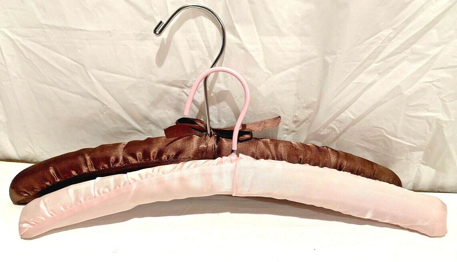 как выглядит Vintage Satin or Fabric Covered Foam Padded Wood Hangers 15 Lot of 6 фото