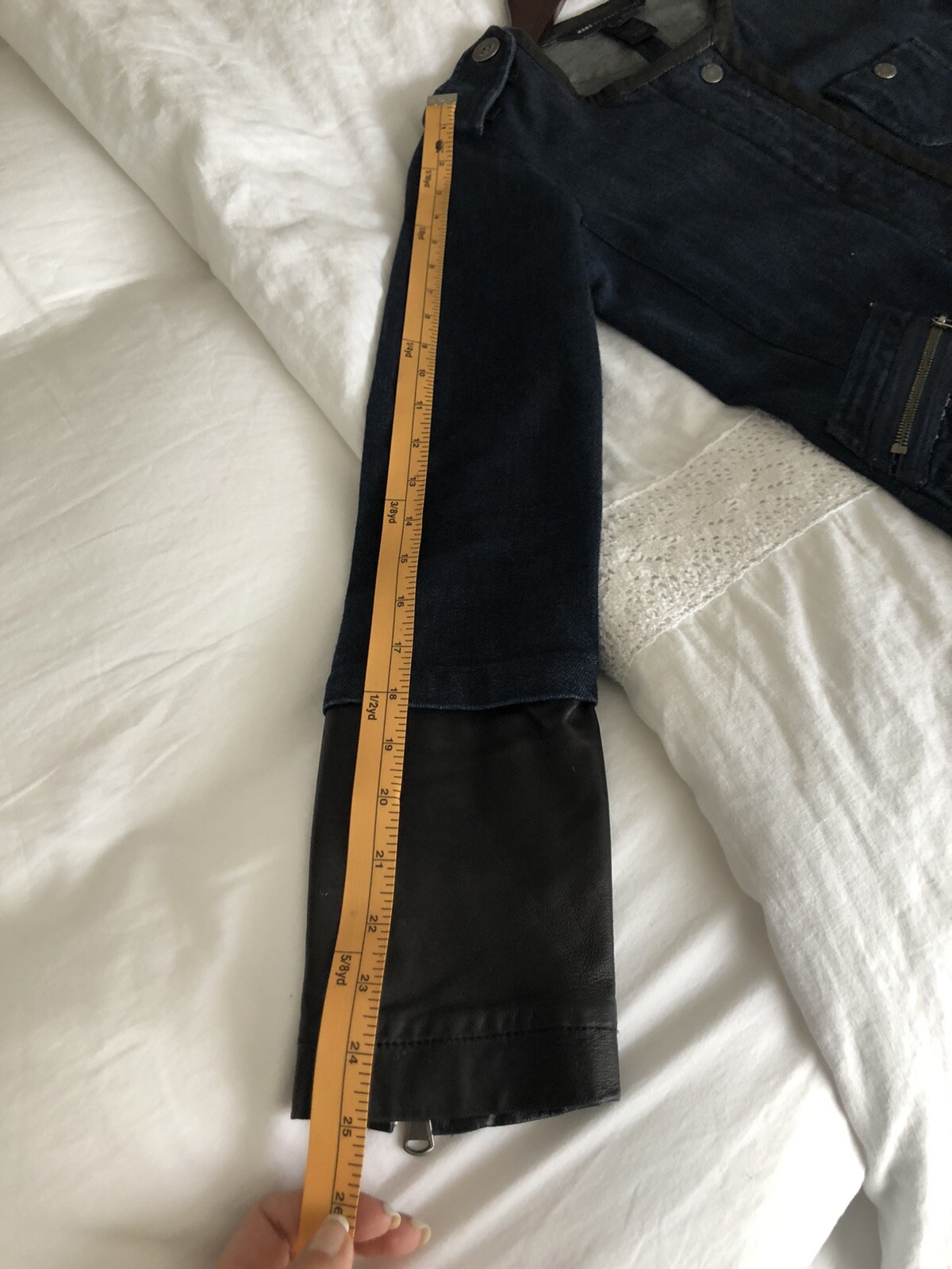 как выглядит Marc Jacobs Kristine Denim And Lamb Leather Jacket SZ 2 Fitted Moto фото