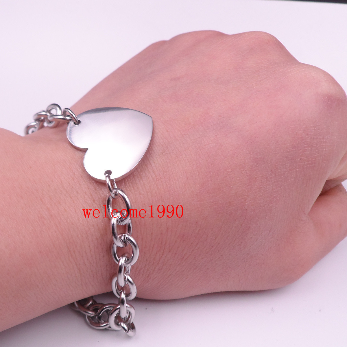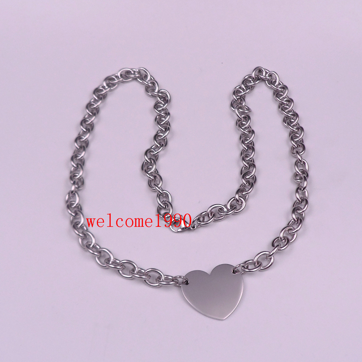 Stainless Steel Love Heart Tag Smooth Oval Link Necklace Bracelet Jewelry Set