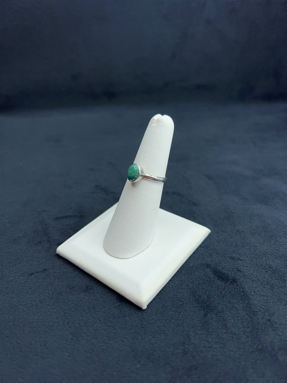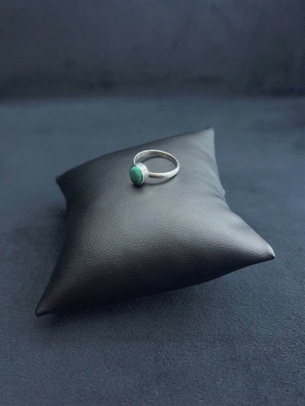 как выглядит Vintage Modernist Oval Shaped Malachite Solitaire Sterling Silver Ring Size 6 фото