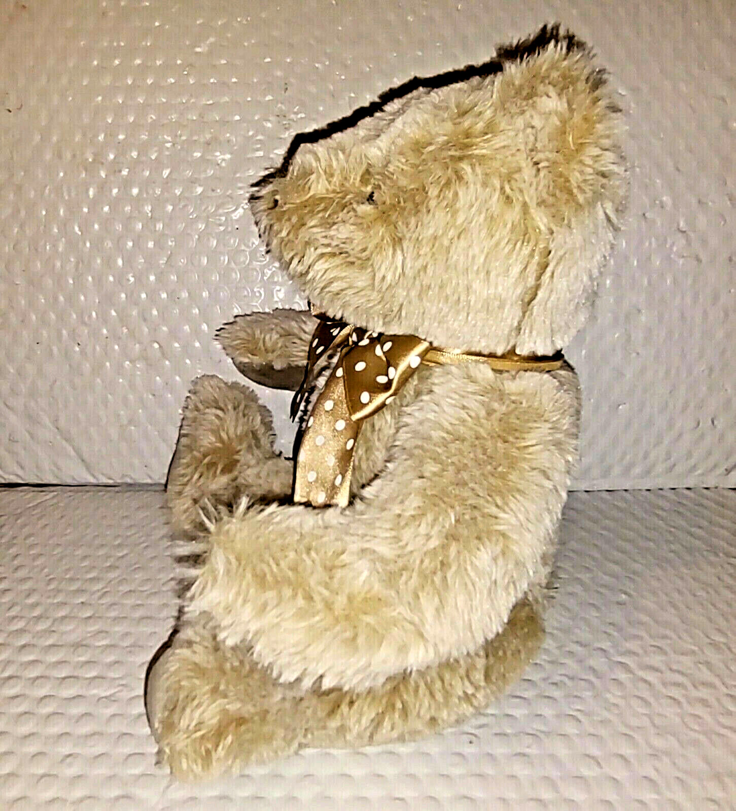 как выглядит FAO Schwarz TEDDY BEAR Tan Light Brown Soft 10in Plush Polka Dot Bow Button фото