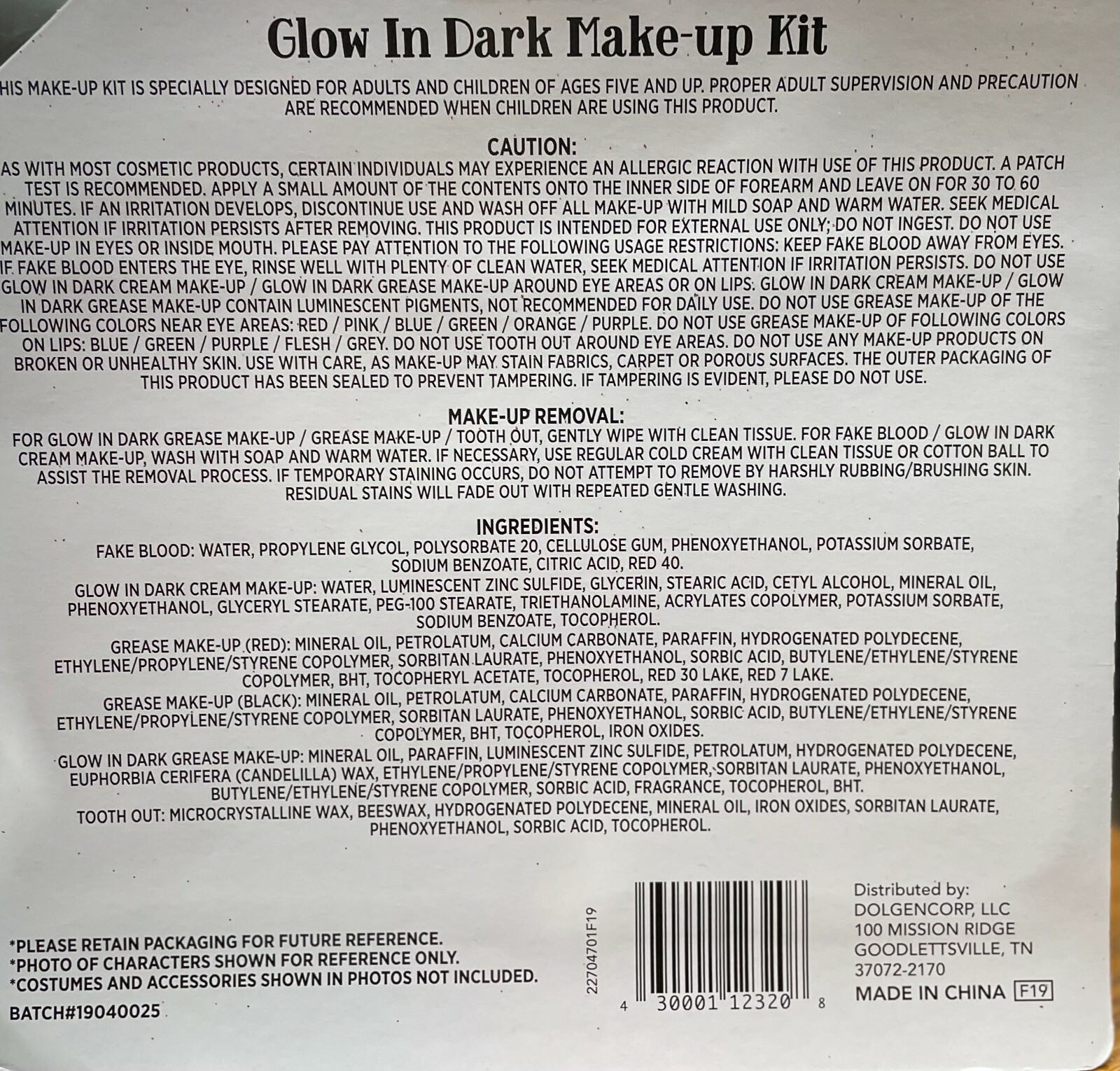 Glow In the dark Make-up Kit Makeup toothout fake blood