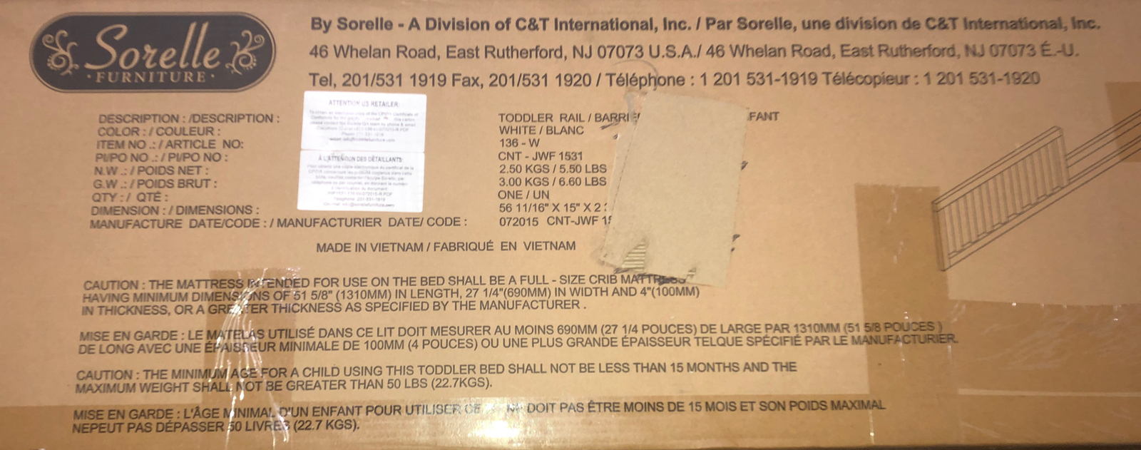 Sorelle 136-W White Baby Toddler Guard Rail-BRAND NEW-SHIPS N 24 HOURS