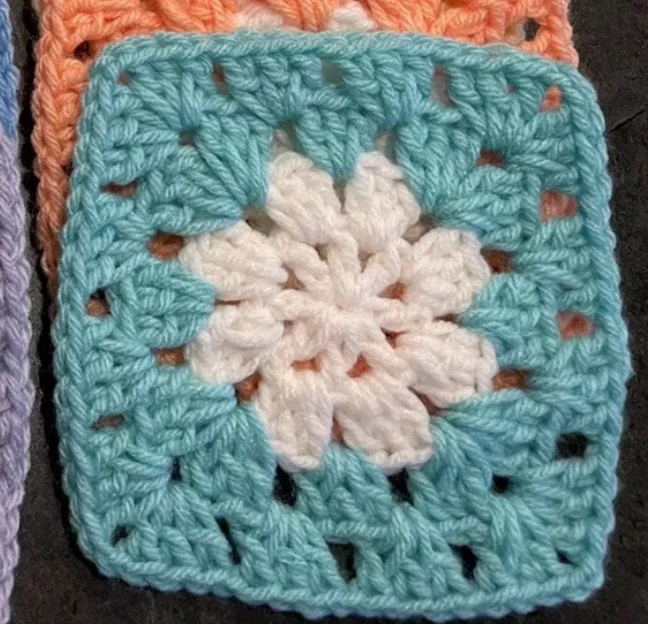 Lot of 20 5 ASSORTED PASTEL Crochet DAISY FLOWER GRANNY SQUARES Blocks Afghan