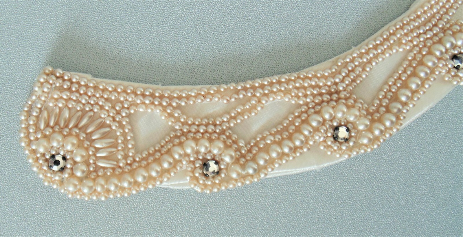 Vintage Sally Gee Beaded Rhinestoned Dress Blouse Collar Japan NICE