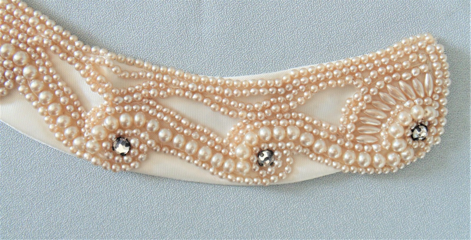 как выглядит Vintage Sally Gee Beaded Rhinestoned Dress Blouse Collar Japan NICE фото