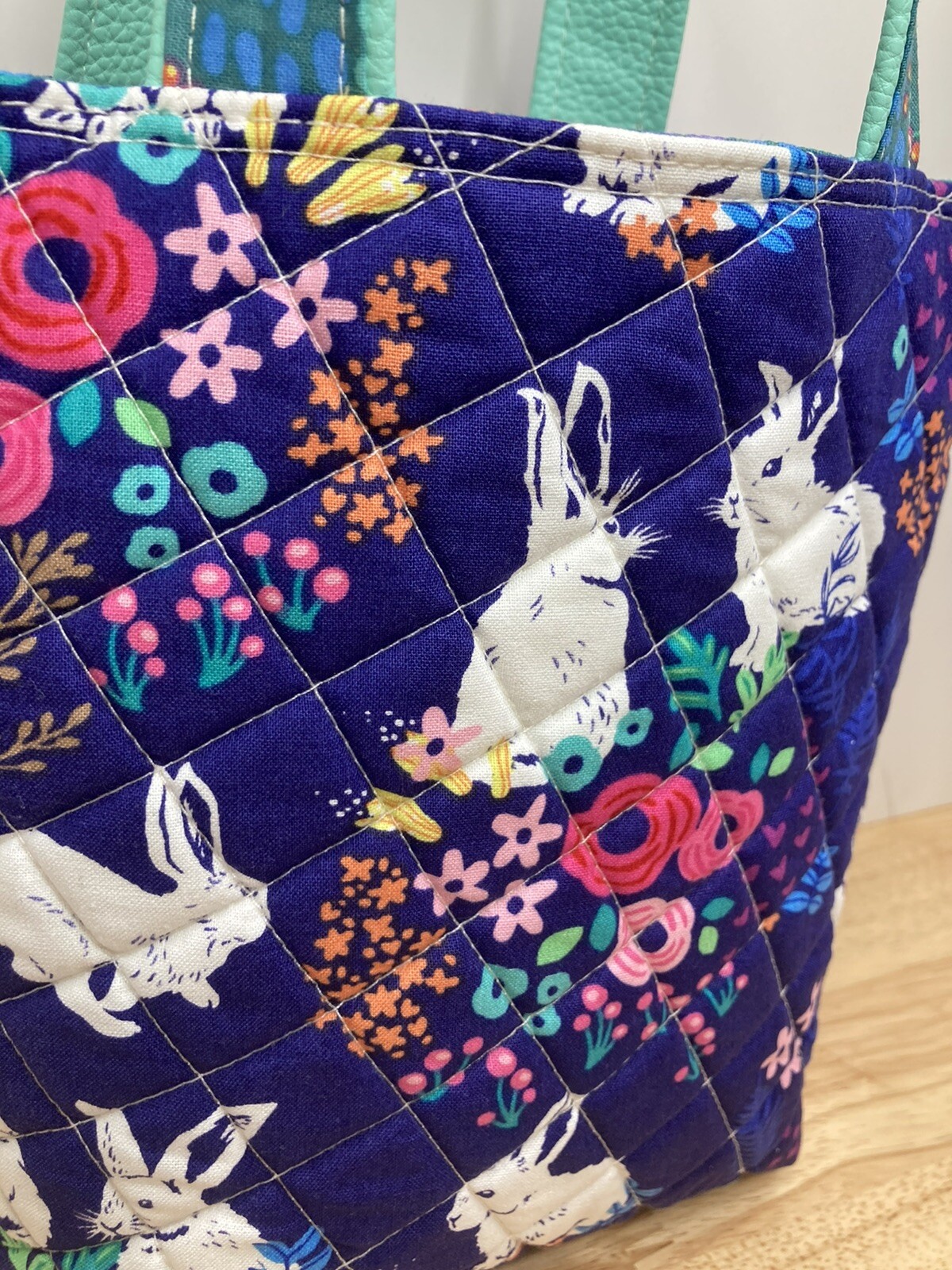 Handmade Childrens Quilted Bunnies Floral Tote Bag