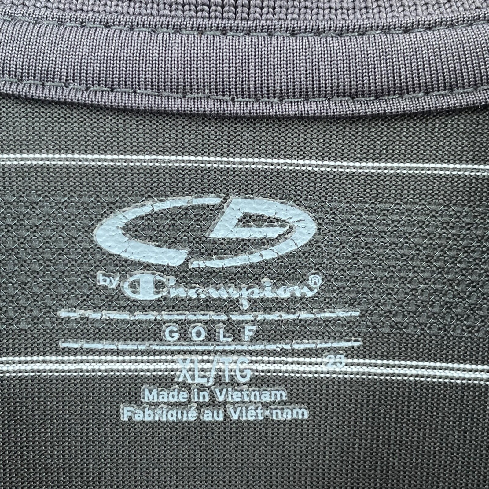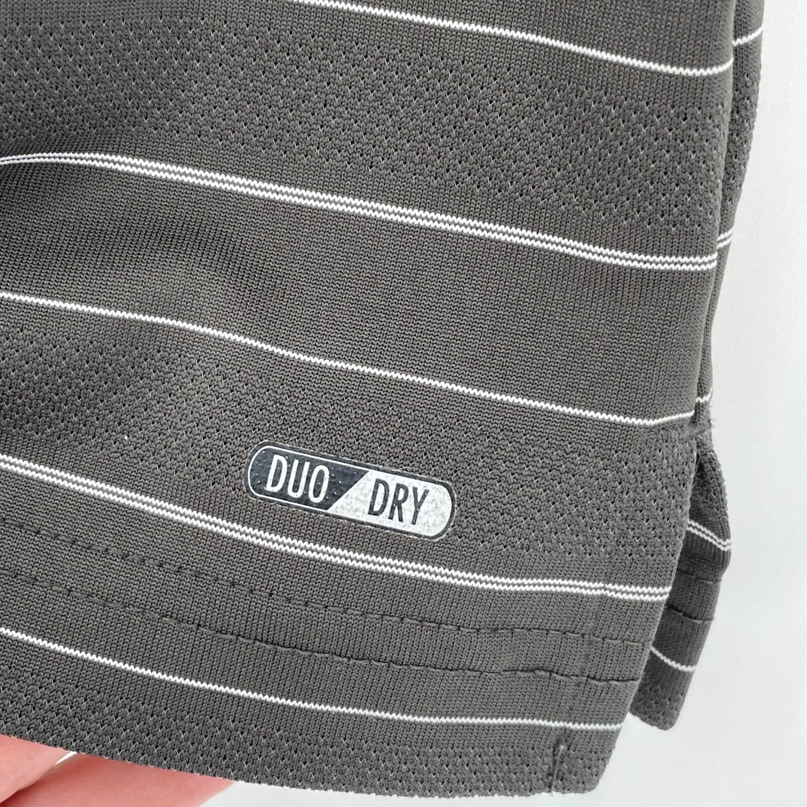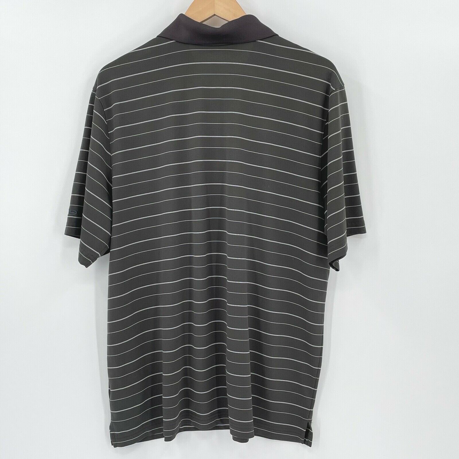как выглядит Champion, Mens XL, Grey White Striped Duo Dry, 3 Button-up Golf Polo Shirt фото