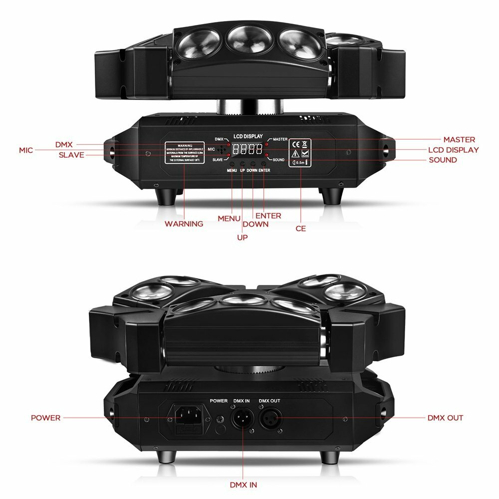 180W 9 LED Moving Head Stage Lighting RGB Spider Beam Lights DMX DJ Disco Party