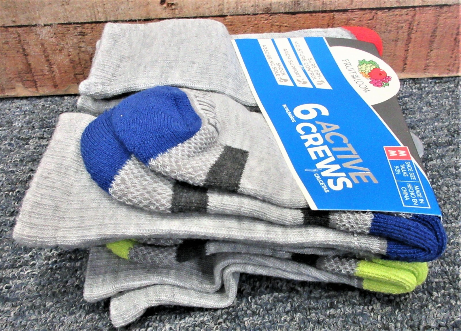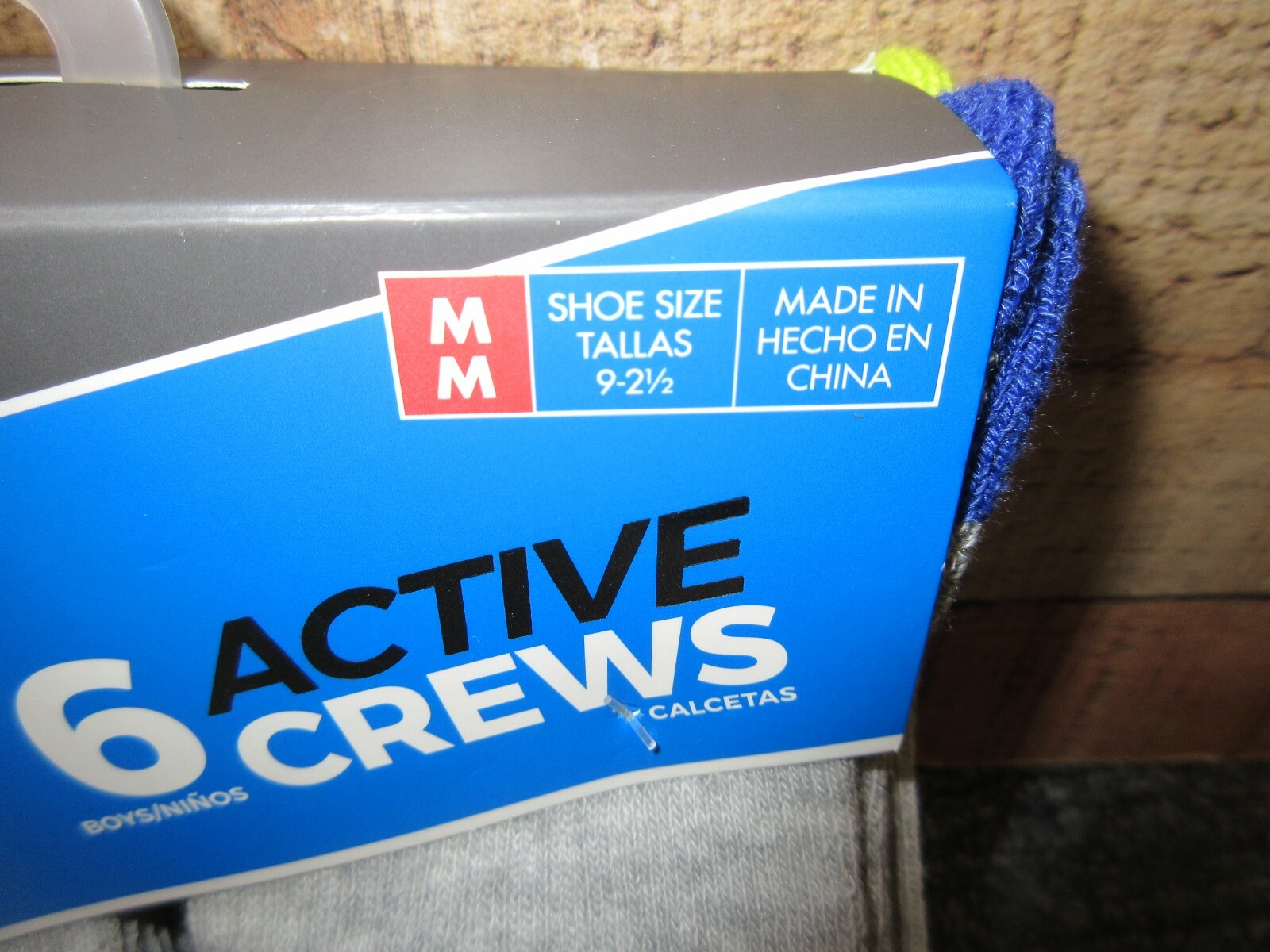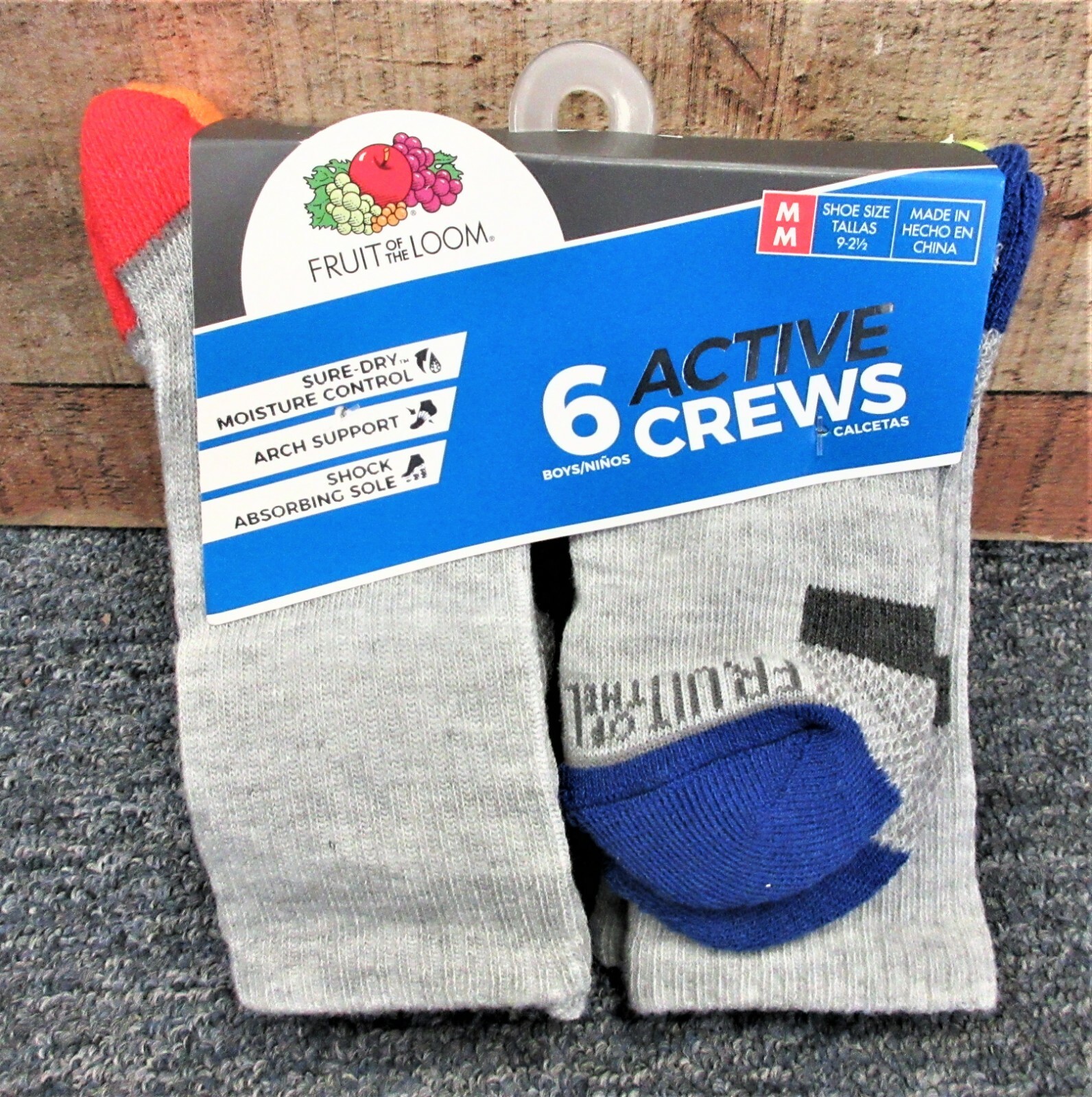 Fruit of The Loom BOYS 6 Active Crews Socks Sz MED Shoe Sz 9-2 1/2