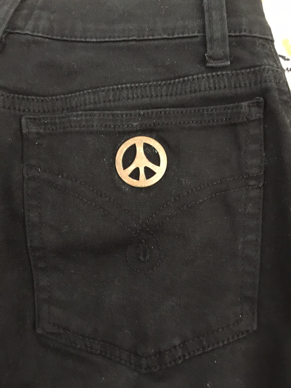 Moschino 28 Peace Logo Vintage Black Straight Leg Classic Jeans Stretch