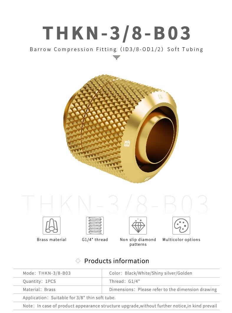8 Pcs Barrow 10/13 10/13mm Compression Fitting Soft Tubing 3/8ID / 1/2OD Gold