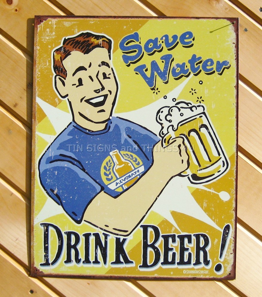 Save Water Drink Beer FUNNY TIN SIGN metal poster bar decor rustic retro 1657