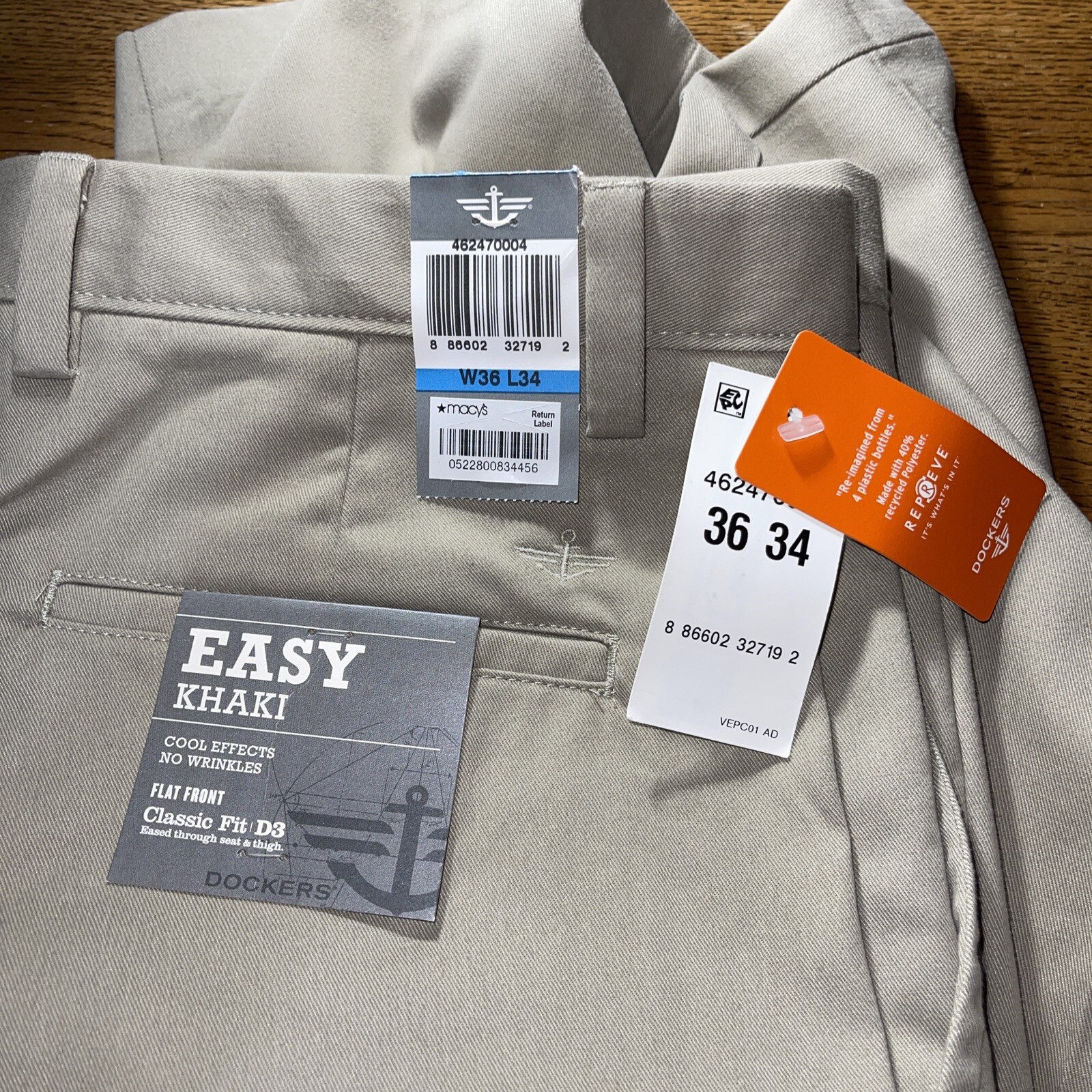 как выглядит NWT Mens Dockers Easy Khaki Classic Fit D3 Flat Front Pants Beige/Tan 462470004 фото