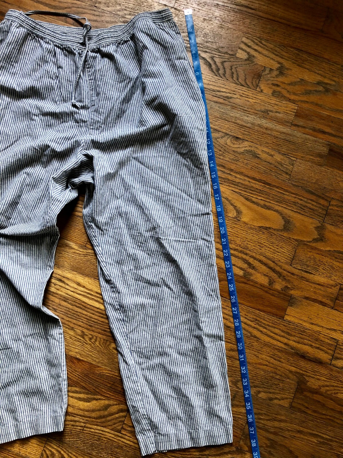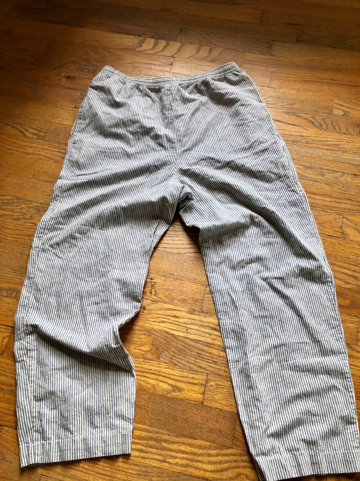 как выглядит Vintage Liz Sport High Waist Blue Striped Drawstring Linen Cotton Pants Large фото