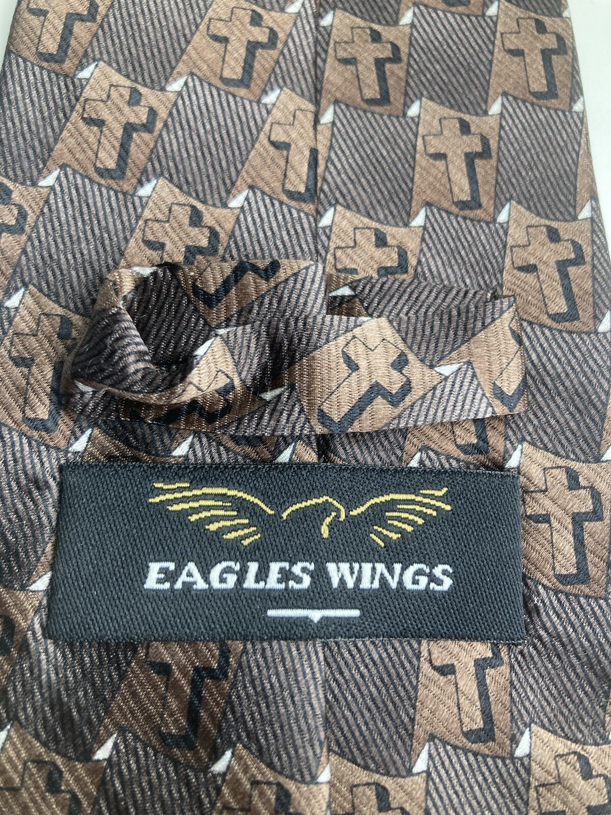 Eagles Wings Christian Cross Brown, Black and White Men's Tie 100 Silk