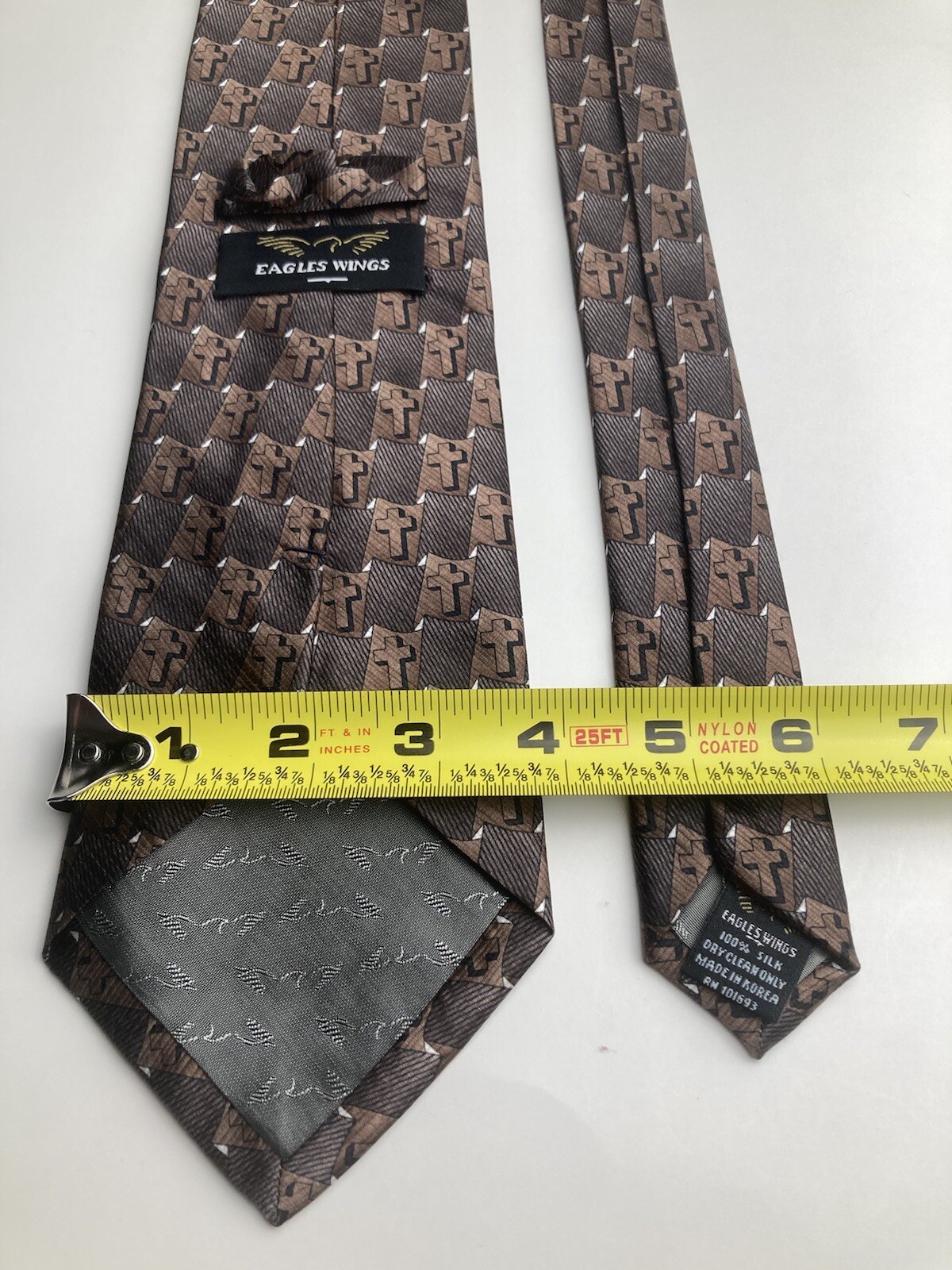 как выглядит Eagles Wings Christian Cross Brown, Black and White Mens Tie 100 Silk фото
