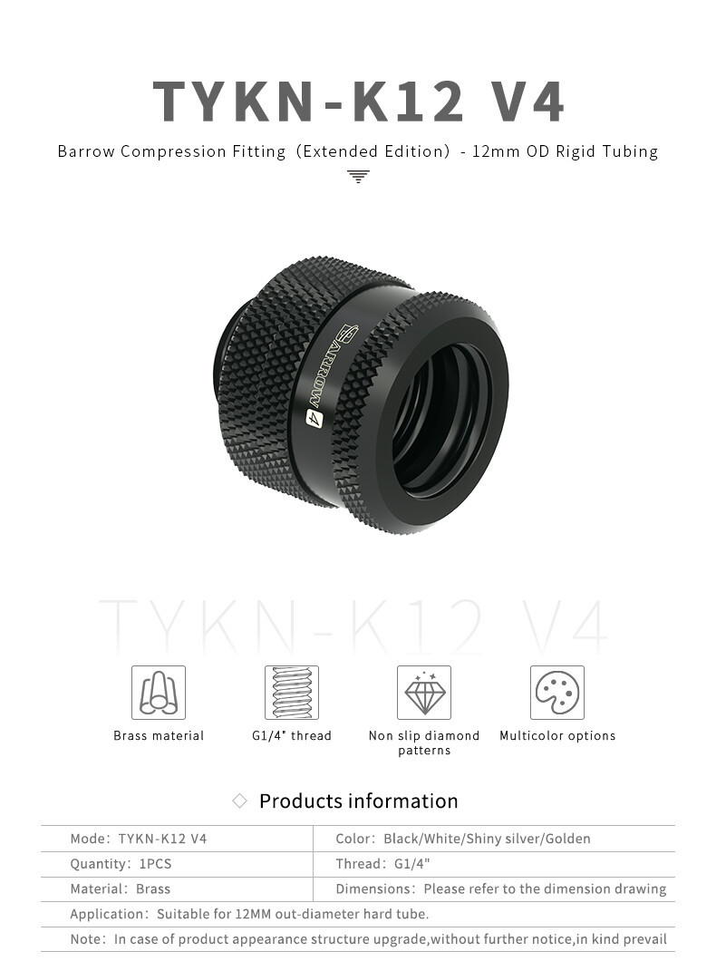 4 Pcs of Barrow G1/4 to 12mm Hard Tubing Compression Fitting Adapter , Black