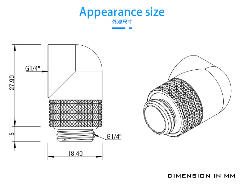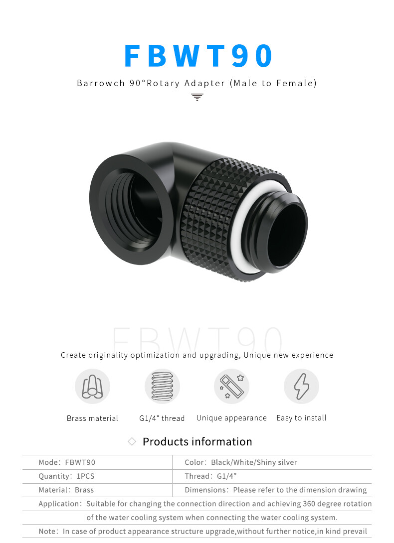 Barrowch G1/4 Male to Female Extender Fitting, 90 Degree Rotary Black 4 Pack