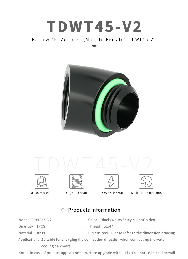 Barrow G1/4 Female to Male Extender Fitting, 45 Degree Angle, Gold 4 Pack