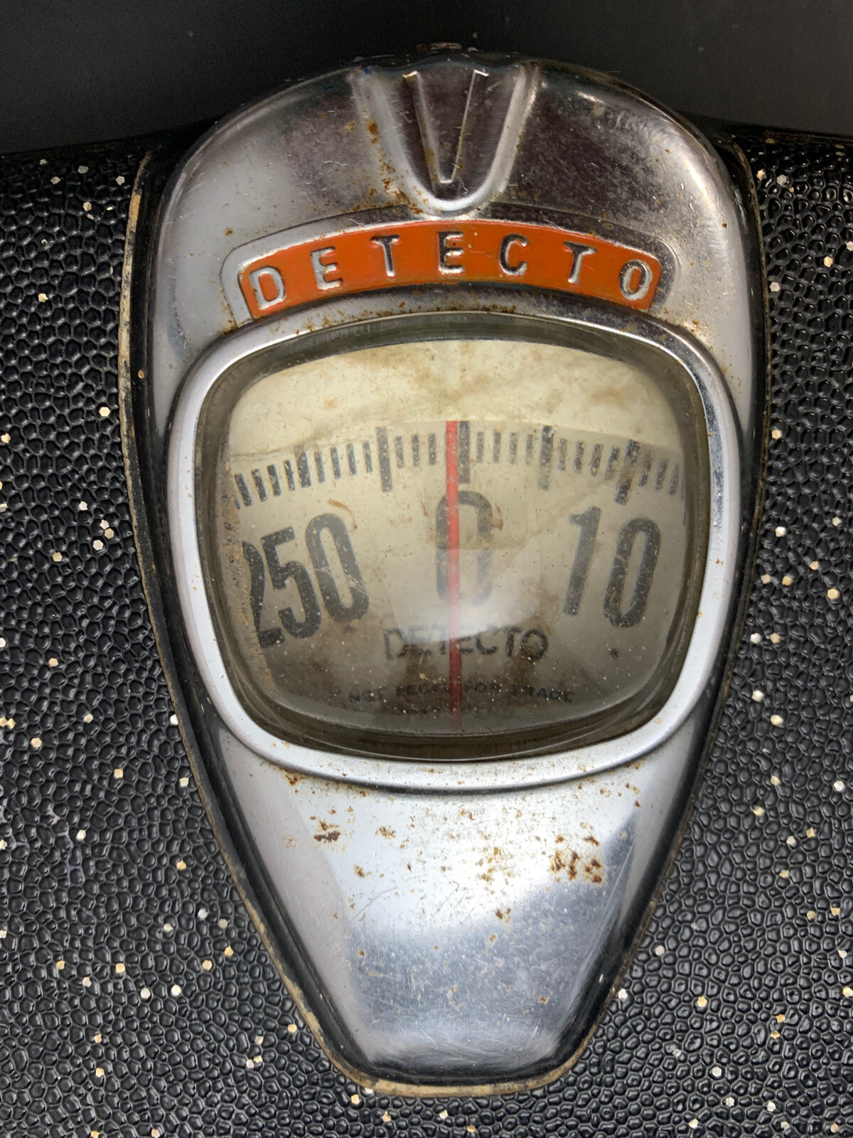 как выглядит Vintage Detecto Bathroom Scale MCM Black Silver Specs MADE in USA Still Works фото