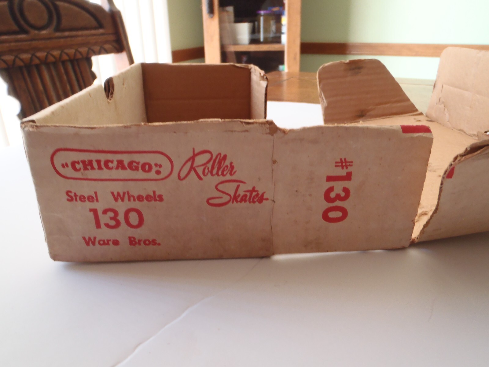 1933 Vintage Metal Chicago Roller Skates w/Original Box Key NOS leather strap