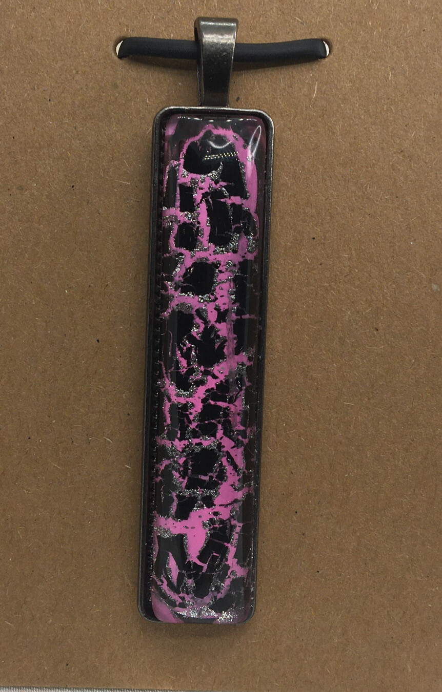 Handmade Antique Dark Metal Hand Painted Glass Pendant 2 Rectangle Bar New 2234