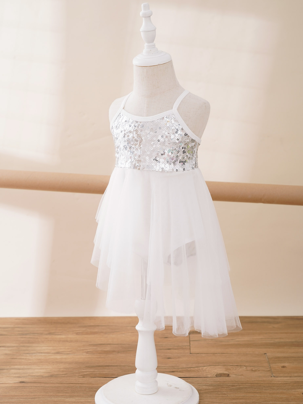 Kids Girls Mesh Leotard Dress Lyrical Modern Ballroom Dance High-low Hem Skirts